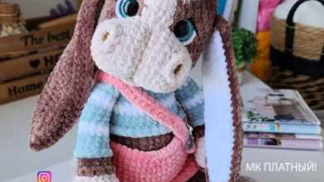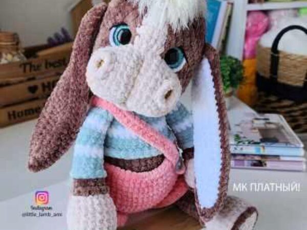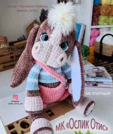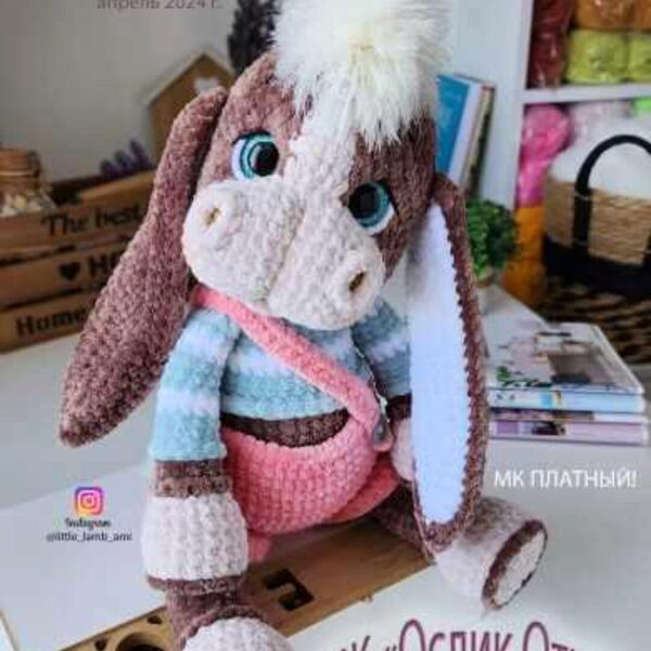 Курс Ослик Отис, автор Любовь Лагутенок. Ослик вяжется из стандартной плюшевой пряжи 100гр/120м.