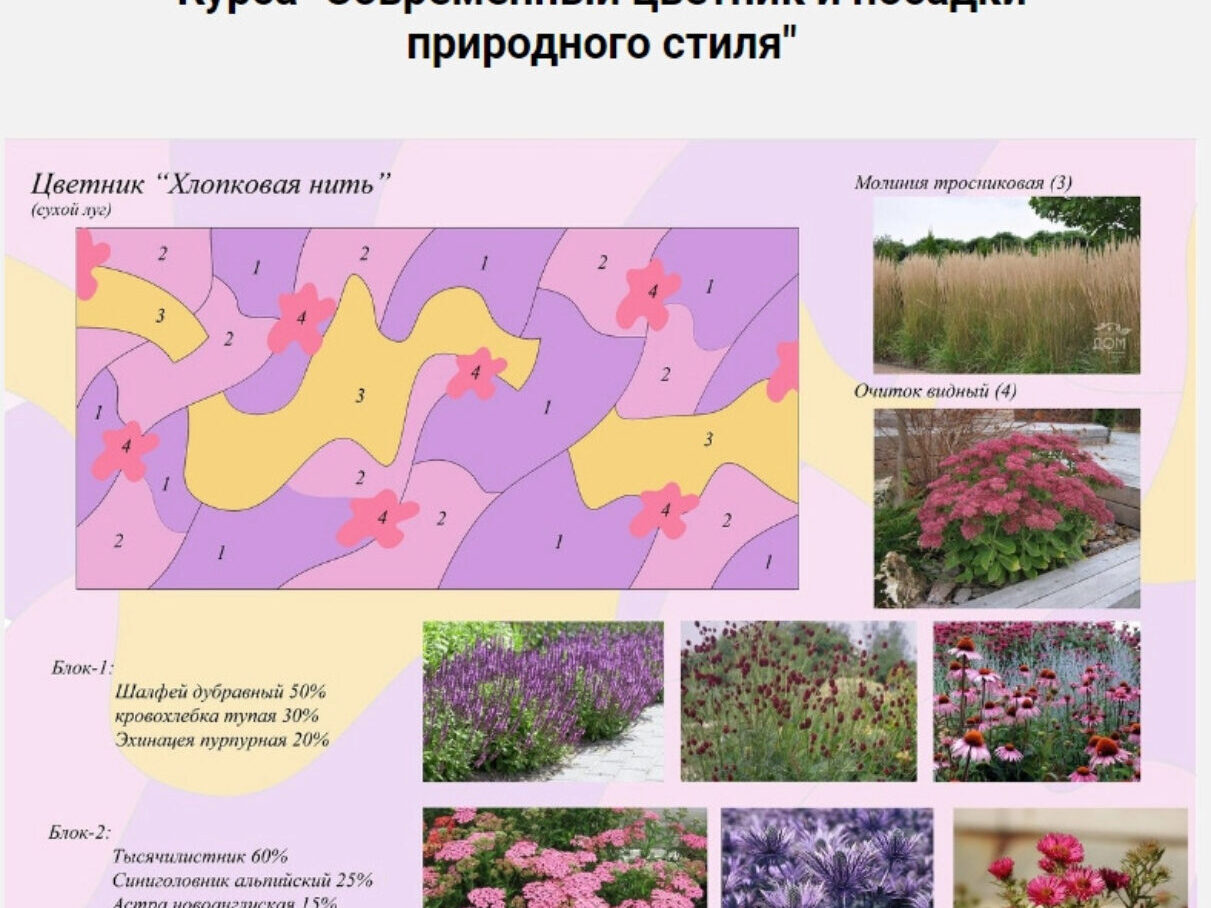 Курс Школа Современного Ландшафта - Современный цветник и посадки природного стиля, автор Людмила Белых. 8 видеолекций, практические задания, обсуждения