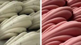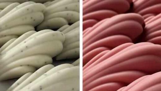 Чизкейки-батончики: «Матча-Черника» в глазури из белого шоколада с добавлением матчи «Мак-Апельсин-Лимон» в глазури из белого шоколада, украшенный пищевым золотом «Клубничный Рафаэлло» в глазури из белого и клубничного шоколада, украшенный кокосовой стружкой «Ваниль-Соленая карамель» в глазури из
