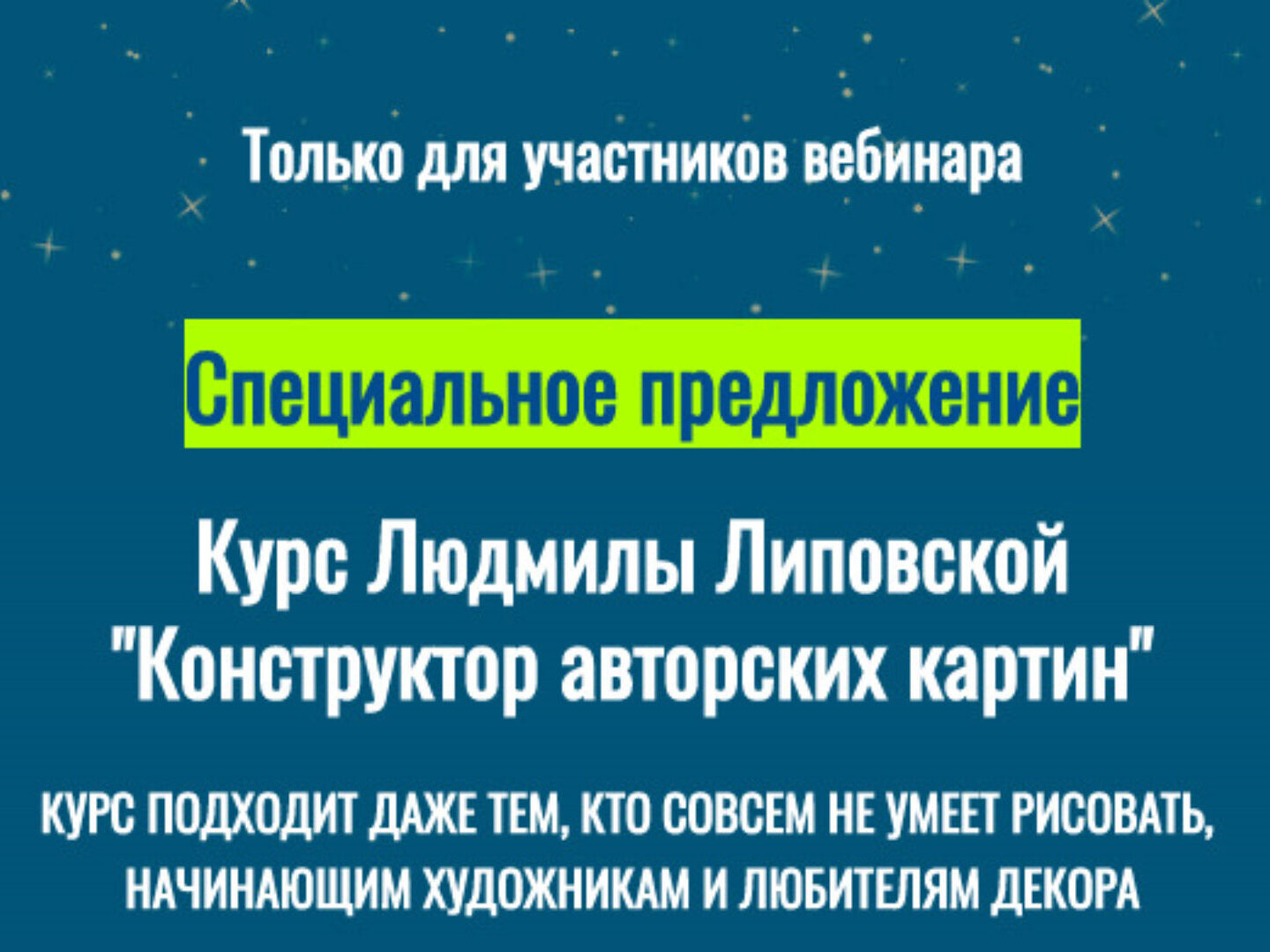 Курс Конструктор авторских картин, автор Людмила Липовская. На курсе вы: