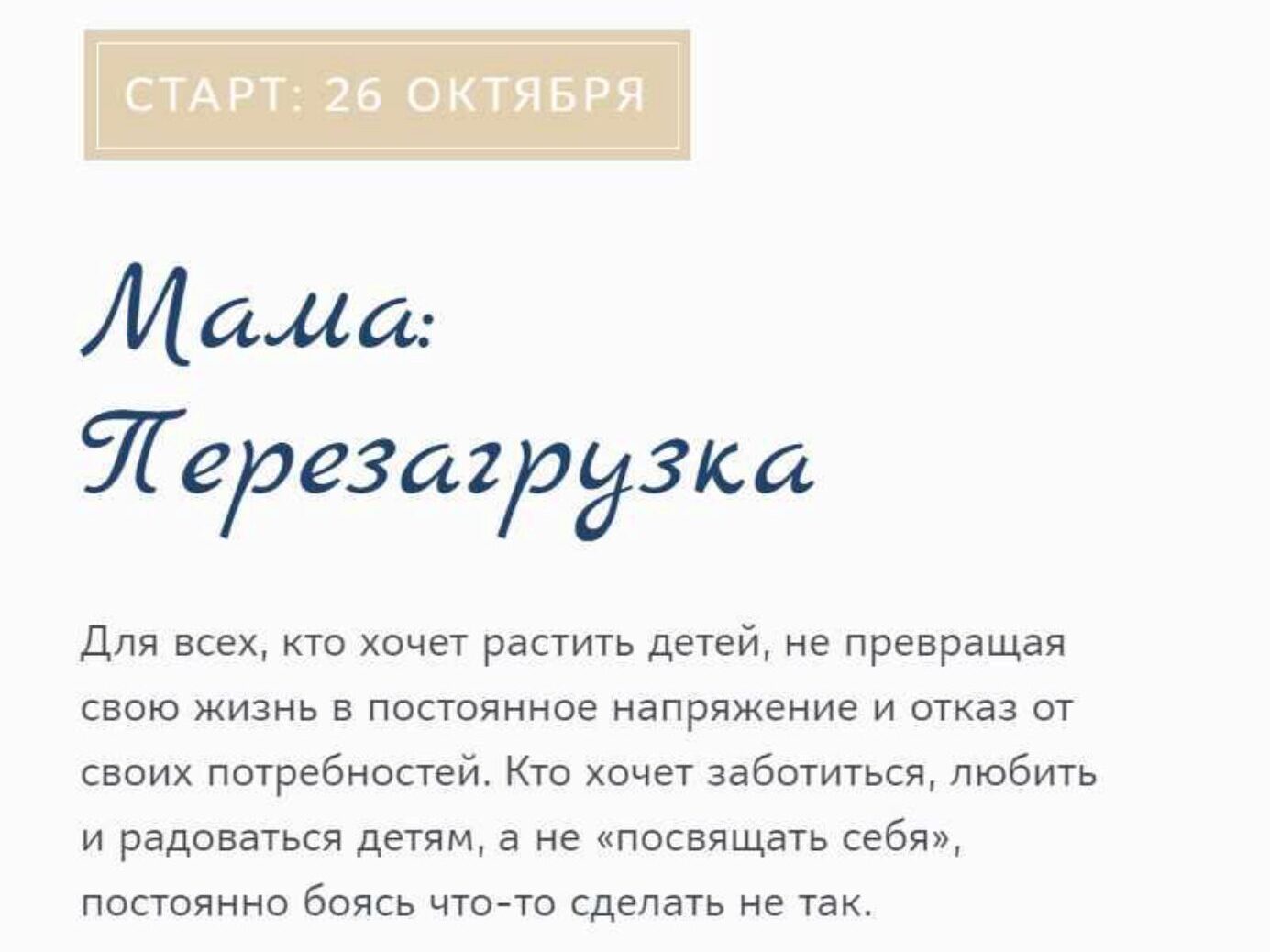 Да, Вы можете получить получить бесплатно фрагмент курса «Мама: перезагрузка. Тариф Без куратора», просто напишите на почту или в телеграм