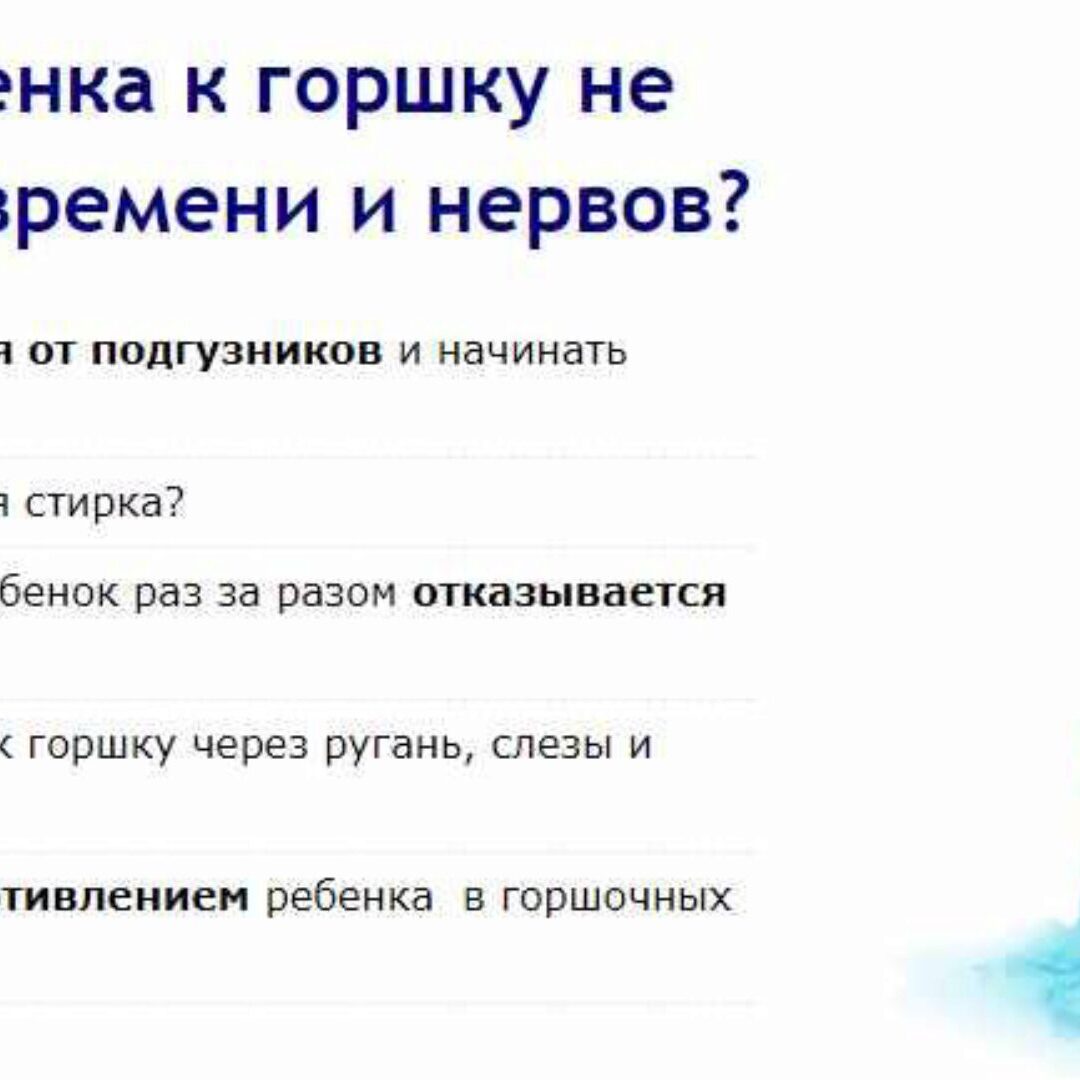 Курс для вас, если: Вам надоело тратить деньги на тонны подгузников Ребенок категорически отказывается садиться на горшок, а вы не знаете, как его приучить к туалетным делам Вы устали постоянно вытирать лужи на полу! Вы не знаете, как уйти от ночных подгузников? Что вы получите: 5 видео лекций как