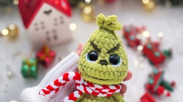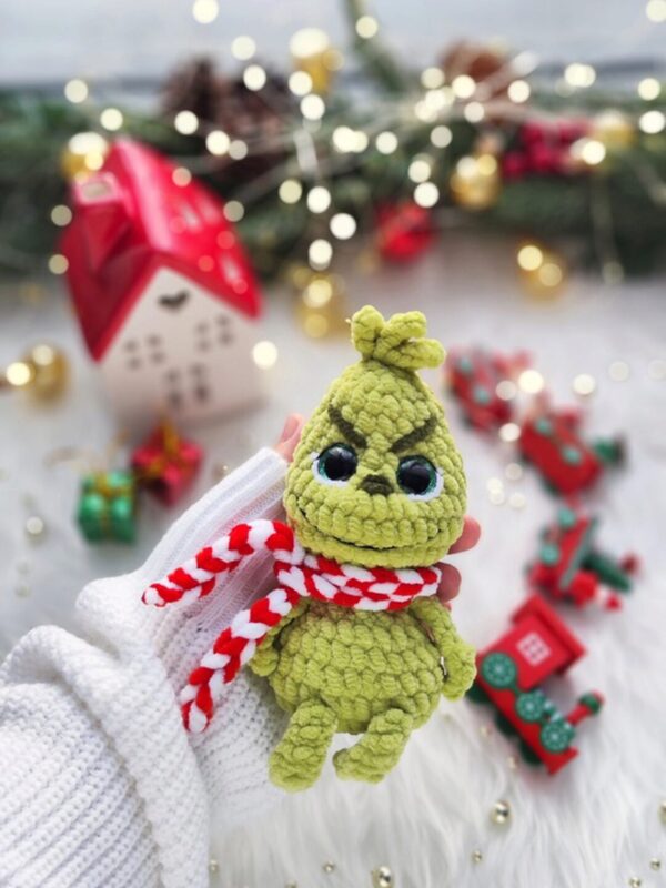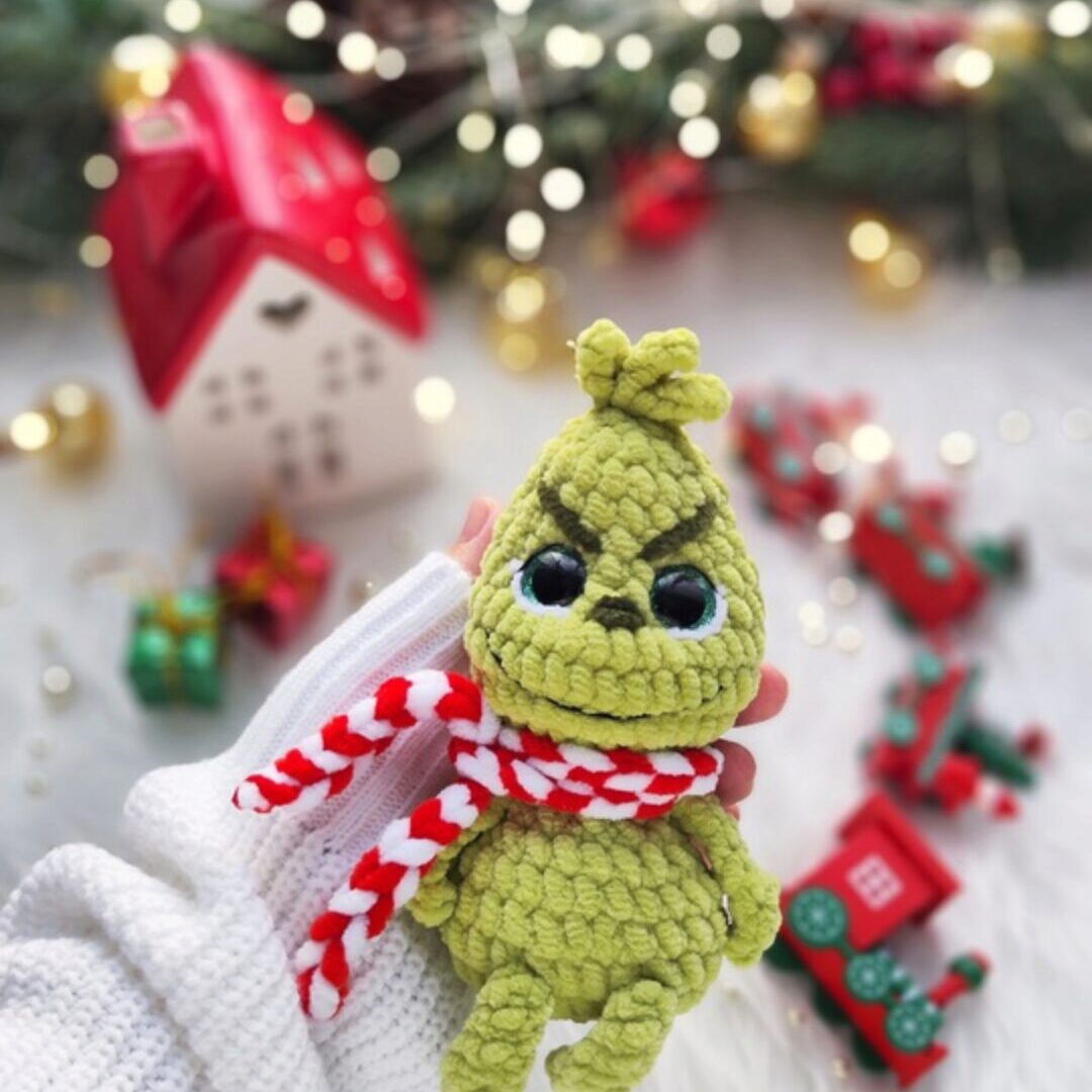 Игрушка из этой пряжи получается примерно 13см в зависимости от качества пряжи, номера крючка и плотности вязания.