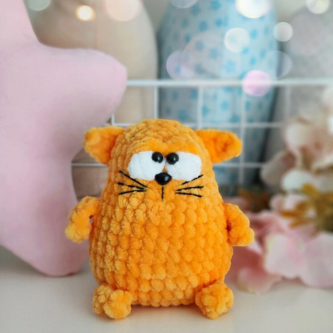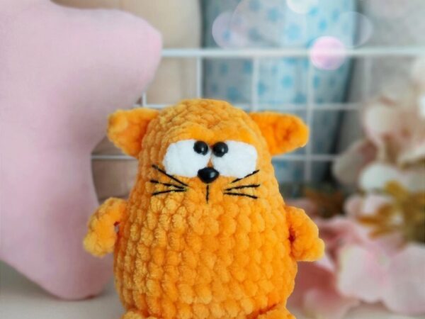 Котик вяжется очень быстро без особых сложностей и без пришивных деталей.