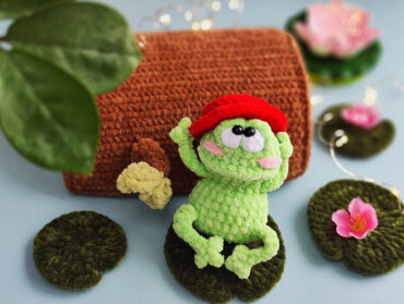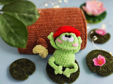 Лягушонок вяжется очень быстро, без единой пришивной детали.