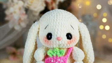 Просили кроликов поменьше? Ура, я это сделала, целый год вынашивала идею создать кролика один-в-один как большой, но с меньшим расходом пряжи. И да, теперь можно связать еще и девочку. Рост кроликов с ушами 45 см, если вязать крючком №4. Без ушек 35 см В МК входит описание шорт, платья, бантика.