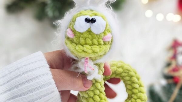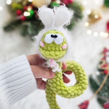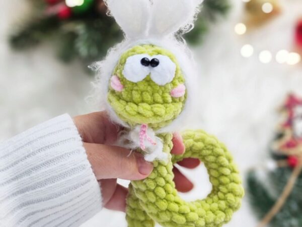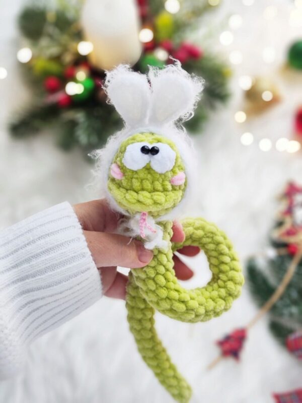 Змейка вяжется снизу вверх одной деталью. Глаза вяжутся по ходу вязания головы. Ротик и веки надвязываются поверх готовой игрушки.
