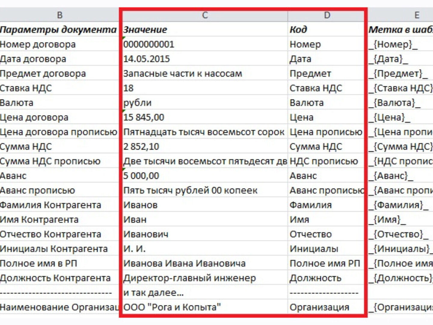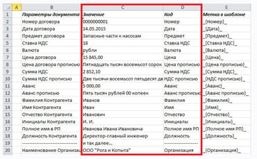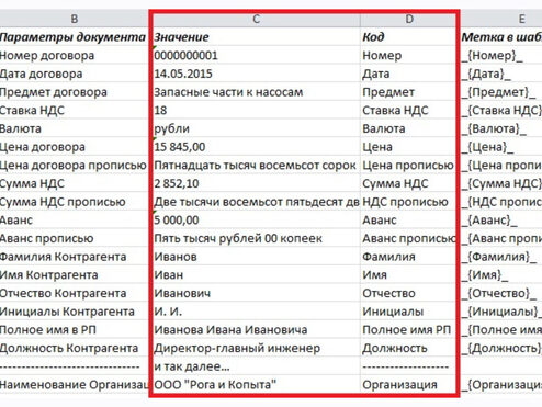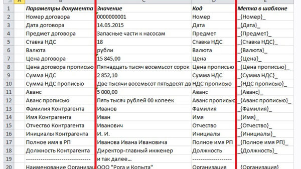 7) использовать значение заданной ячейки в именах заполняемых документов;
