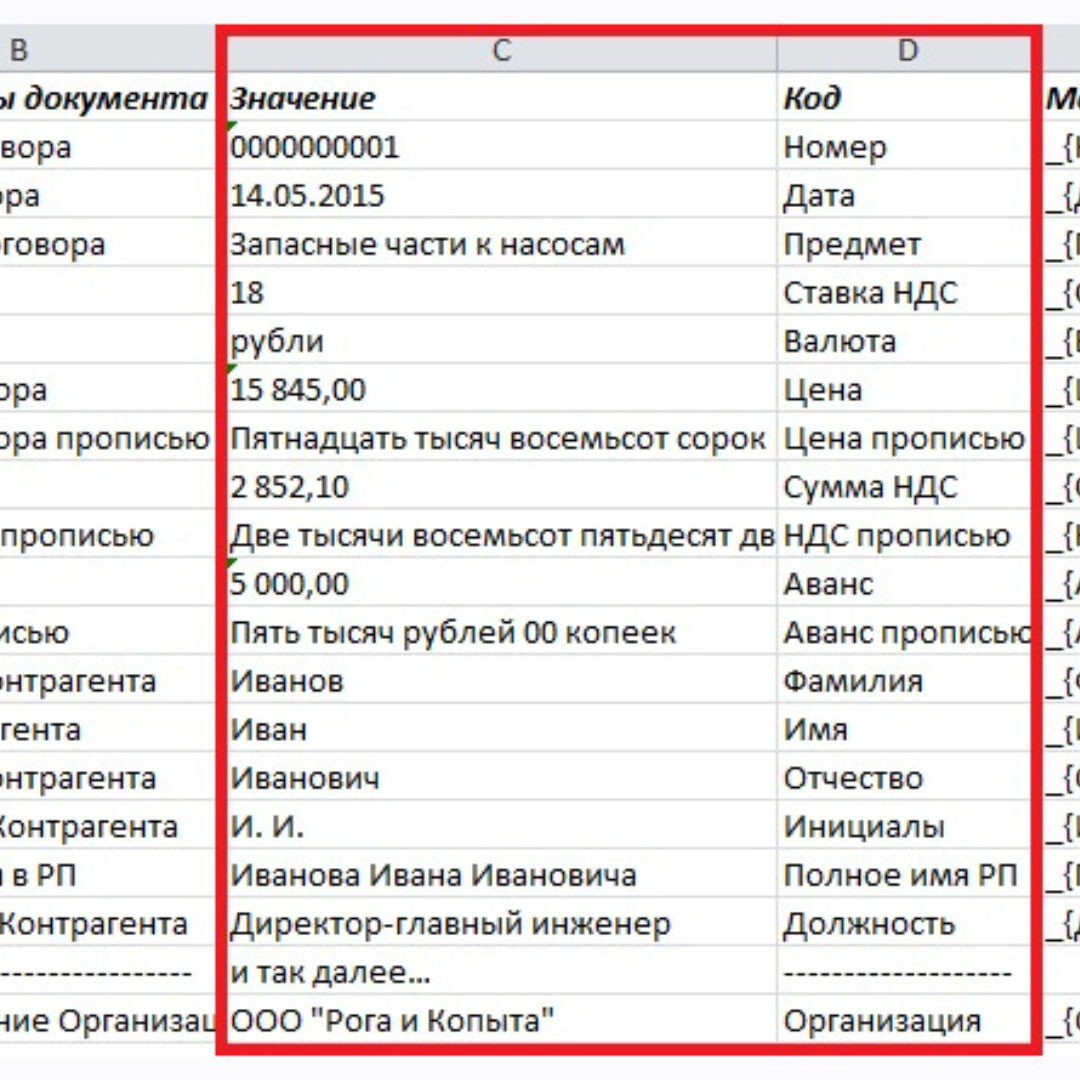 Удобная форма для автозаполнения договоров и любых иных документов.