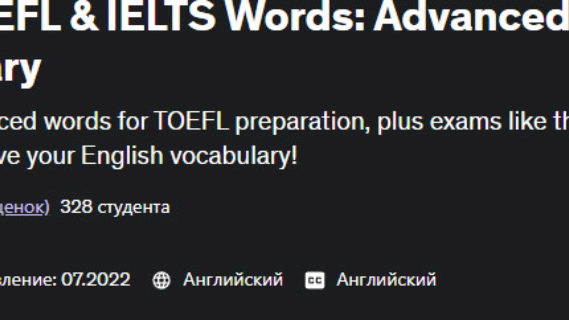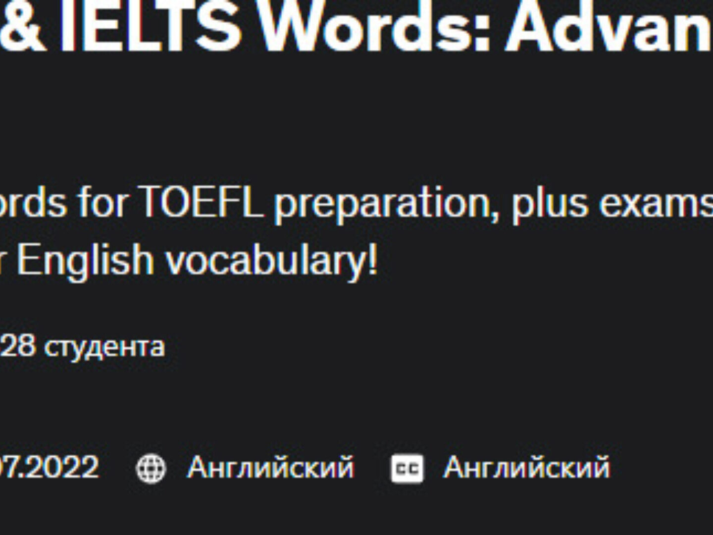 Вы готовитесь к TOEFL или другому экзамену по английскому языку? Или вы чувствуете, что ваш словарный запас не улучшается? Если это так, то этот курс именно для вас!