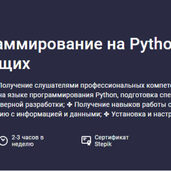Чему вы научитесь Полное базовое понимание программирования на Python начиная с базовых тем, заканчивая аналитикой на Python Веб-разработка именно с серверной части Базовые алгоритмы Базовое понимание ООП Требования Навыки программирования не требуются, вы научитесь всему самому Описание Python