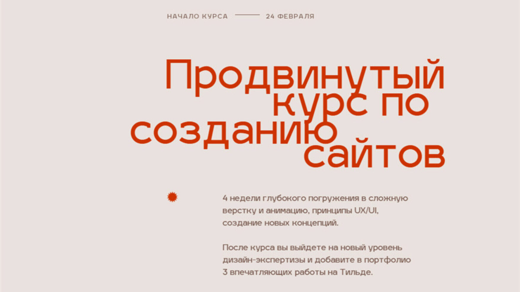 Tilda PRO поможет junior и middle дизайнерам сайтов на Тильде глубоко разобраться в теории веб-дизайна и продвинутых функциях платформы — на выходе вы сможете создавать уникальные и яркие проекты уровня известных digital-студий.