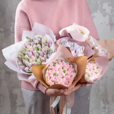 Вы получите следующие материалы: 1. Видеоурок «Махровые зефирные тюльпаны» и упаковка в корейской технике. Тюльпаны как настоящие. 2. Авторский сборник зефирного флориста (все материалы, полезные ссылки на магазины, инструменты, упаковка и расходные материалы необходимые для создания зефирных