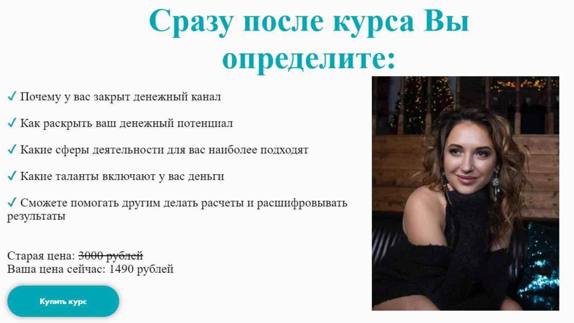 Программа курса: 22 видеоурока Талант: – трактуем числа вашего таланта, – определяем ваше предназначение, общий духовный путь. Деньги: – почему закрыт денежный канал, – как сделать, чтобы раскрылся ваш денежный потенциал, – какие профессии для вас наиболее подходят. Отношения: – какой партнёр вам