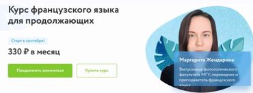 Годовой курс; 60 занятий Занятие состоит из вебинара, домашнего задания и теории. Кому будет полезен курс Курс для тех, кто хочет изучать французский язык с нуля. Какие знания дает курс Знание французского языка на уровнях А1-А2 по общеевропейской шкале языковой компетенции: основные времена,