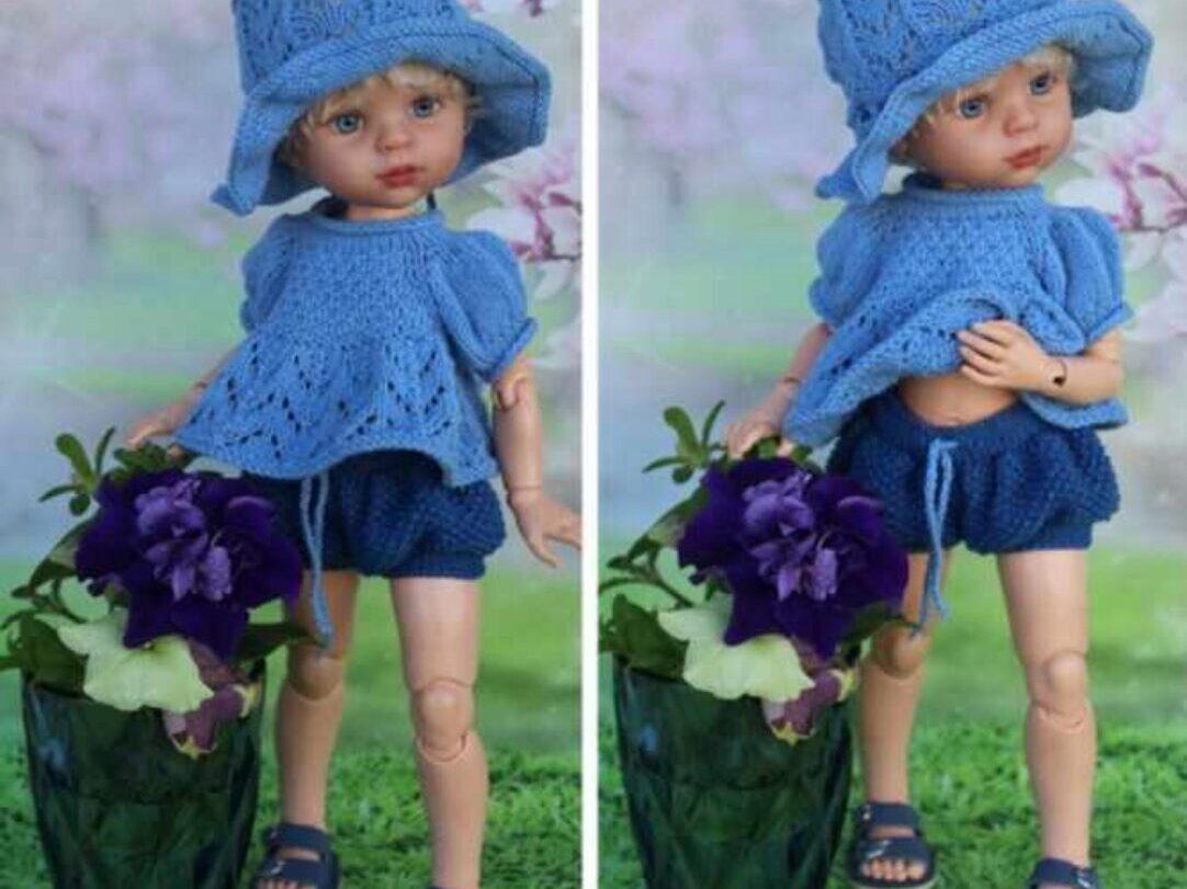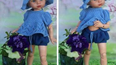 Вы свяжете комплект состоящий из полосатых штанишек, отлично садящихся по фигурке куколки, укороченного топа, классической, универсальной кофточки на пуговках и шапочки с отворотом, ажурными дорожками и небольшим помпоном. Для работы нам потребуются- пряжа- Пух норки- 90% пух норки, 10% ПЭ,