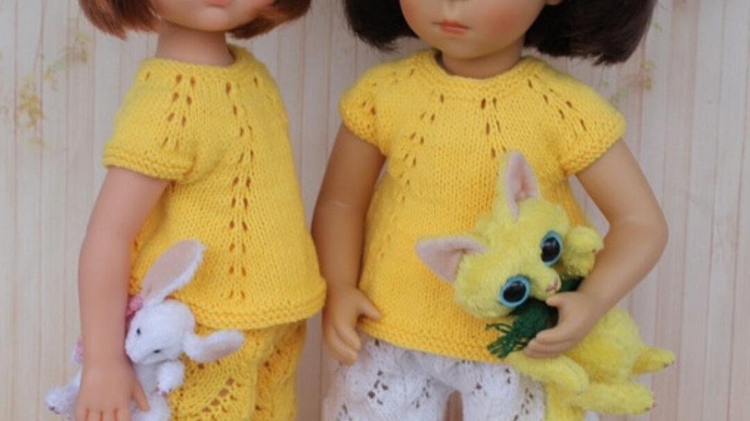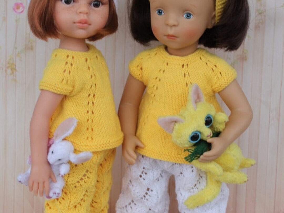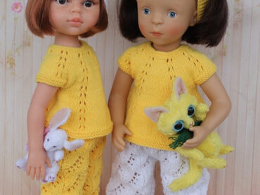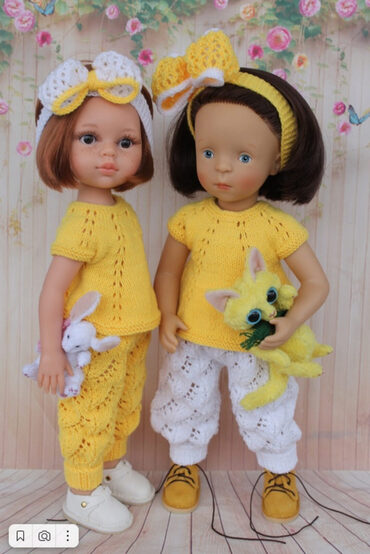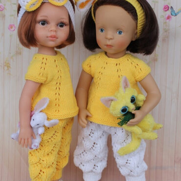 Курс Любимая кукла - Мастер класс по вязанию топика и штанишек для Паолки и Минушки, автор Марина Кащенкова. Готовое подробное описание по вязанию топика и штанишек .