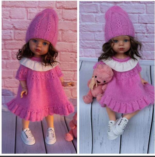 Комплект состоит из ажурного платья-халата и ажурного беретика. Для работы нам потребуются- пряжа-YarnArt Cotton Soft 55% хлопок, 45% полиакрил, 600 м, 100 г. или другая подобного состава и метража. Спицы 1.25, чулочные. МК в PDF формате.