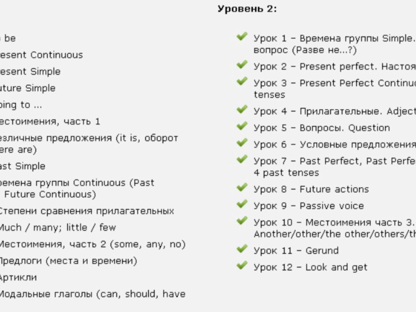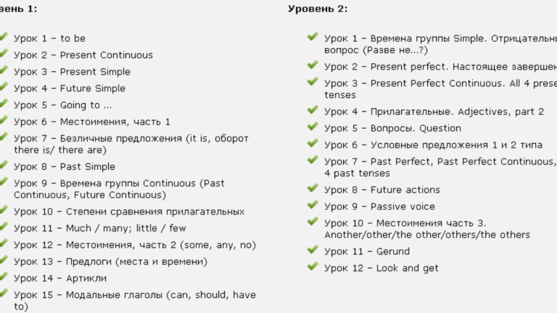 Живые уроки по грамматике Уровень 1 и 2 – это два самостоятельных курса, рассчитанных на разные уровни подготовки. Начальный и средний.