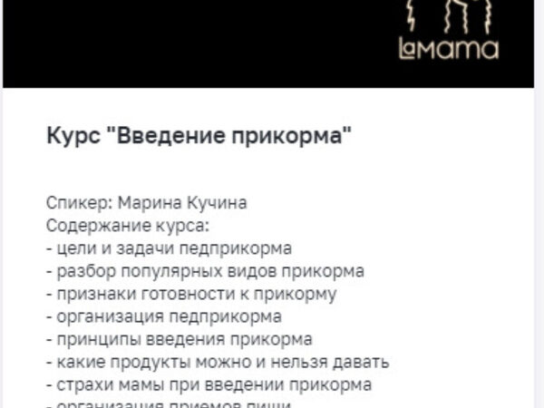 Марина Кучина «Введение педагогического прикорма» — LaMama слив скачать
