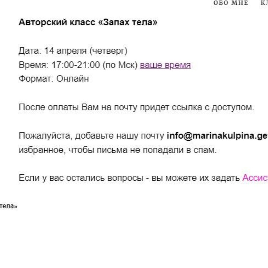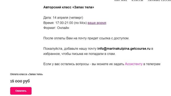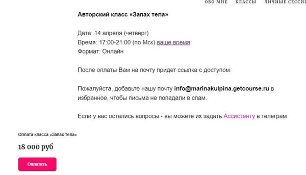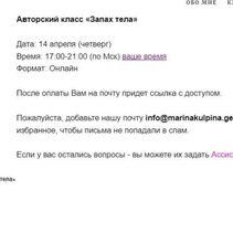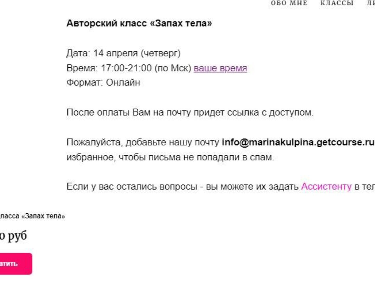Марина Кульпина Авторский класс «Запах тела» — Access слив скачать