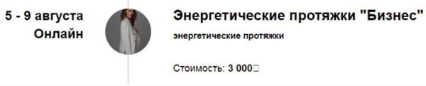 Курс Энергетические протяжки Бизнес, автор Марина Кульпина. Дата: 5 - 9 августа (пн - пт)