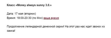 Интро-класс «Money always sunny 2.0.» (трехчасовой авторский класс с практическими инструментами и легендарной денежной протяжкой из самого сердца Дубая!)