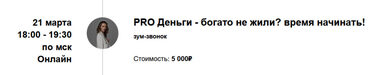 Курс PRO Деньги - богато не жили? время начинать!, автор Марина Кульпина. Дата: 21 марта (четверг)