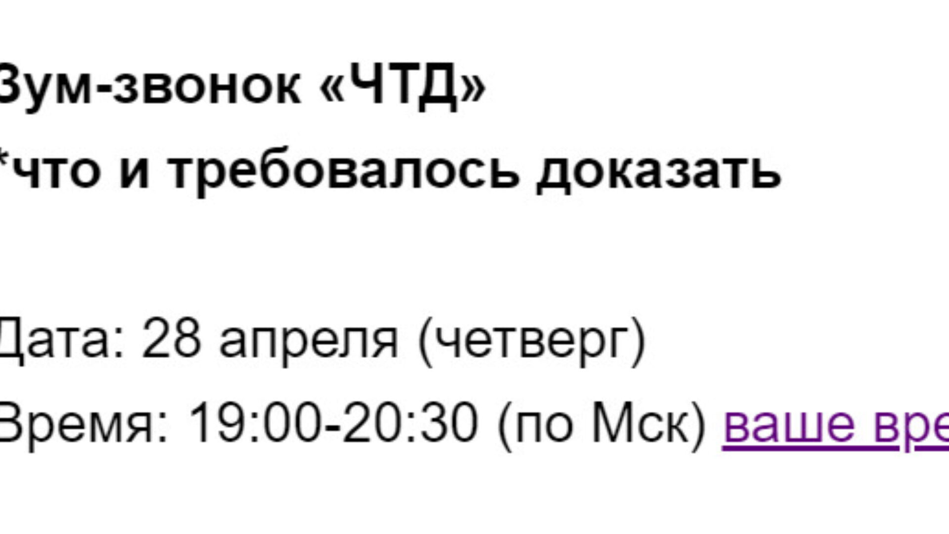 Отзывы о курсе Зум-звонок «ЧТД» от Марины Кульпиной
