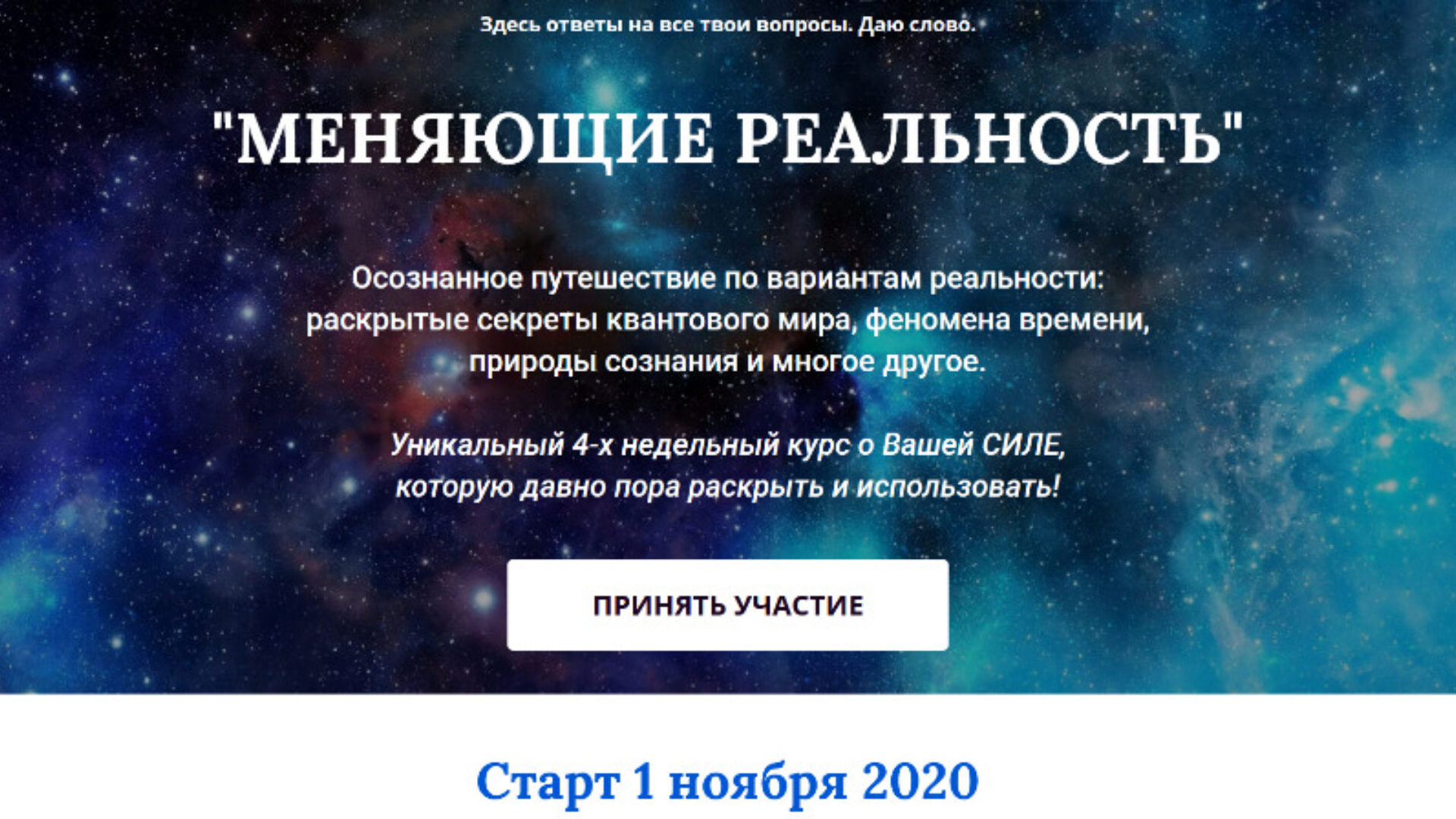 Самая крутая трансформация жизни ждет вас на практическом курсе - Меняющие Реальность!