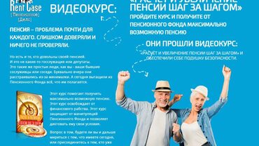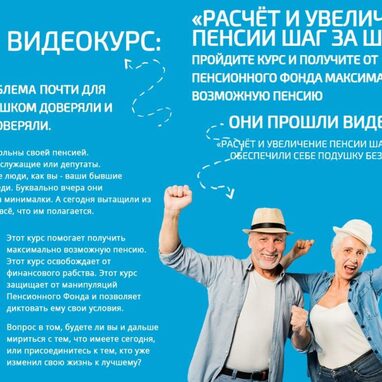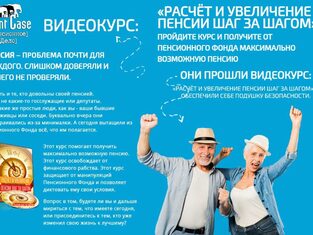 Это идеальный для вас вариант. Курс поможет сразу получить максимально возможную пенсию. Без навыков расчёта вы просто потеряете деньги, либо в борьбе с Пенсионным Фондом потерпите поражение. - ДЛЯ ТЕХ, КТО ПЫТАЕТСЯ САМ УВЕЛИЧИТЬ СВОЮ ПЕНСИЮ