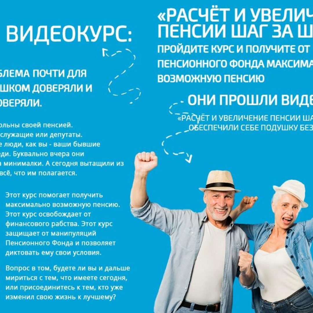 Если пенсия ещё впереди, то с помощью курса вы легко сможете её увеличить в 2 раза. А кто-то даже больше.
