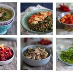 Вы получите конспект: Овощной борщ с ботвой Крем-суп из зеленых овощей с легким песто Икра из цукини или кабачков Крекеры из льняного семени Грибная «икра» Салат из овощей с киноа Салат из кольраби и яблока с пармезаном Легкий хумус с болгарским перцем Дип из белой фасоли Дип из авокадо и горошка