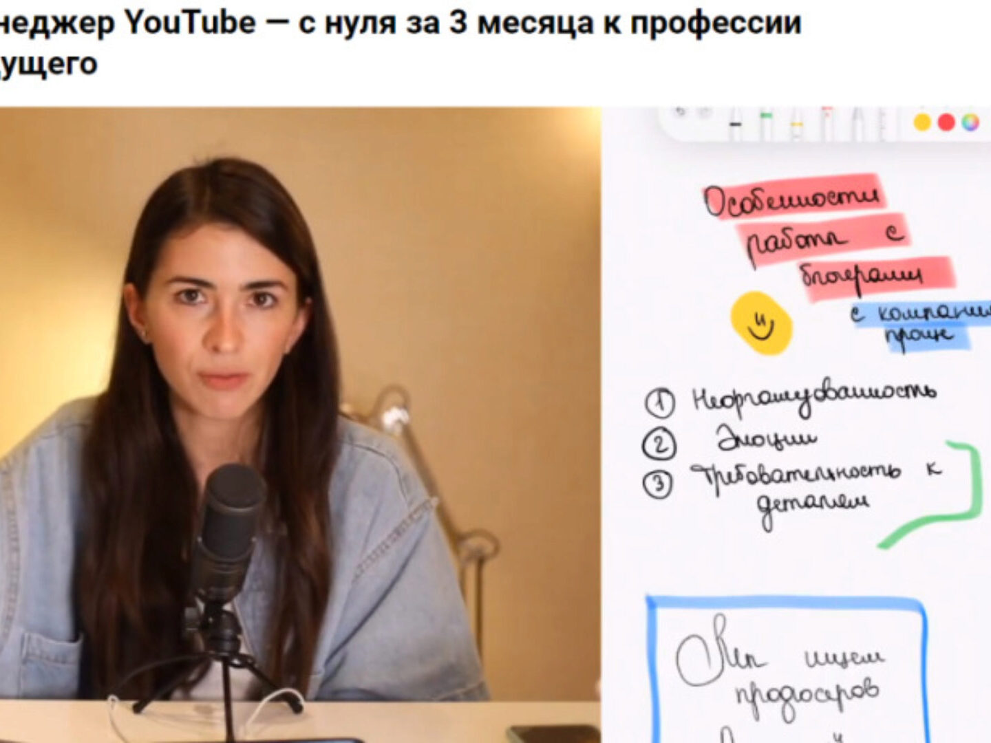 - Ступень 1: «Старт. Основы работы менеджера по YouTube — позиционирование, рост и работа с контентом.» 13 уроков