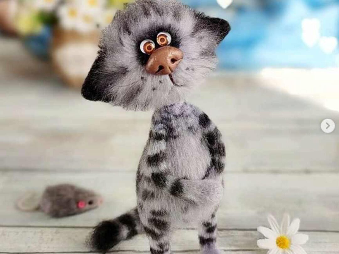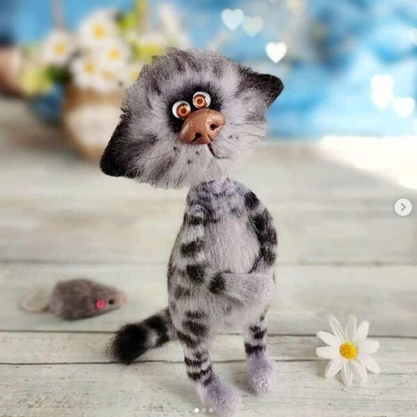 Каркасная игрушка в комбинированной технике из ангоры и мохера. Игрушка вяжется в 2 нити: ангора( Real 40/Angora Gold)+ Kid Royal- в тон основной нити. Для каркаса используется герберная(флористическая) проволока, диаметр 1,2-1,4 мм. Игрушка цельновязаная. Есть лепные детали из полимерной глины.