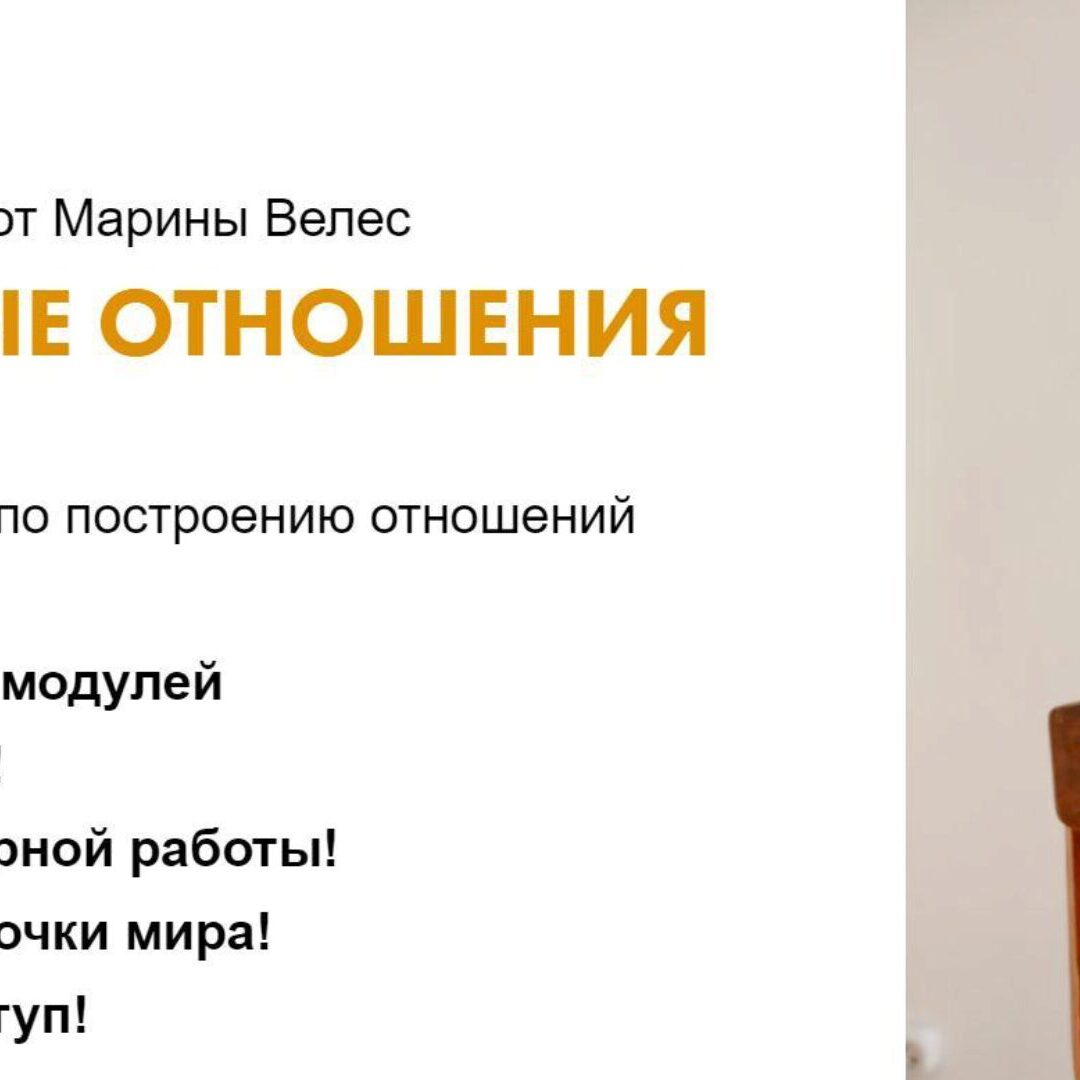 Вы получаете полный курс / тренинг со всеми материалами, но без обратной связи и поддержки автора Марины Велес — именно это позволяет предложить такую выгодную цену. Вы учитесь в удобном ритме, без переплаты за сопровождение.