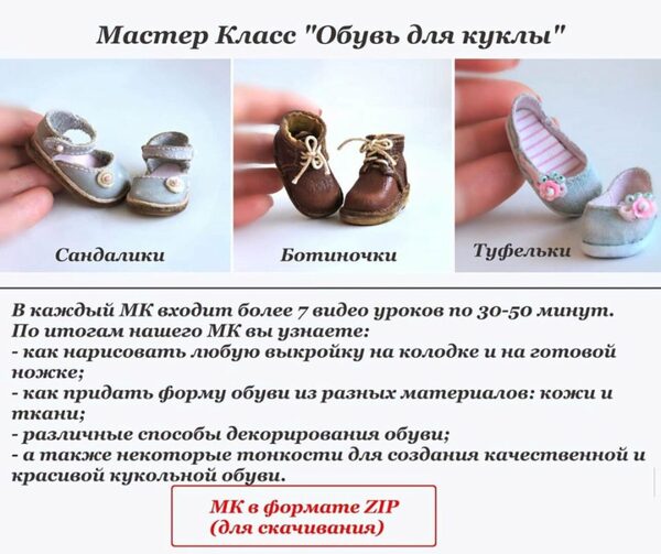 После оплаты, материалы курса «Обувь для куклы» приходят на Ваш email.