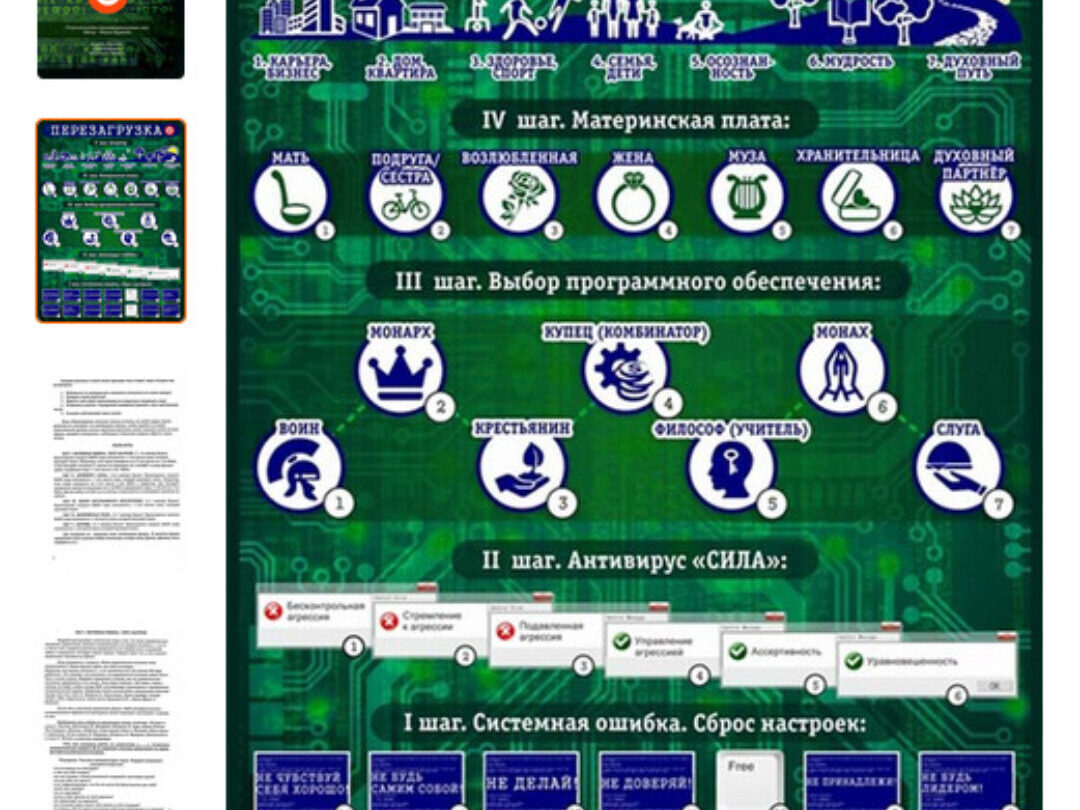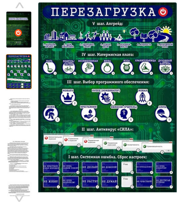 Игра «Перезагрузка» помогает игроку осознать, на какой стадии своего развития он «застрял», что необходимо сделать, чтобы перейти на новый качественный уровень жизни, научиться достигать целей, получать успех во всех сферах, наладить отношения с любимыми и близкими людьми, обрести смысл жизни.