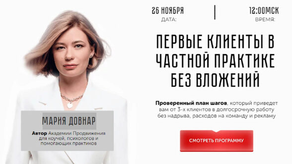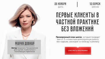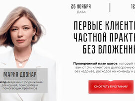 Курс Первые клиенты в частной практике без вложений, автор Мария Довнар. На мастер классе вы узнаете: