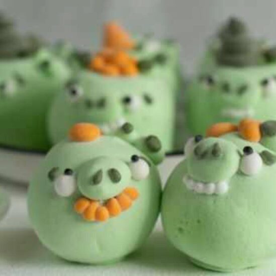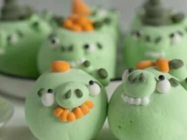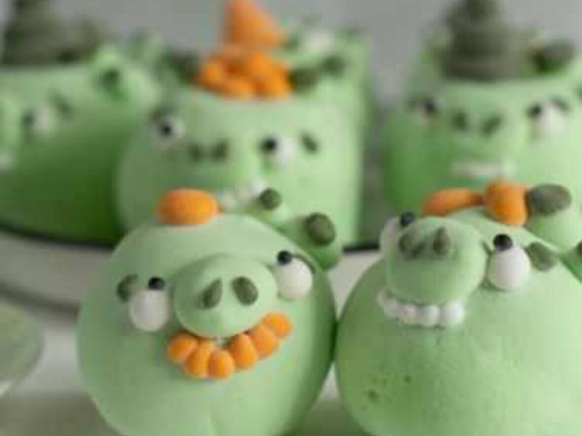 - Попсы «Марс» (шоколадный бисквит, приготовление карамели, шоколадный крем, начинка «Шоколадно-карамельный мусс»). Приготовление и сборка, покрытие попсов маршмеллоу в виде зеленых свинюшек