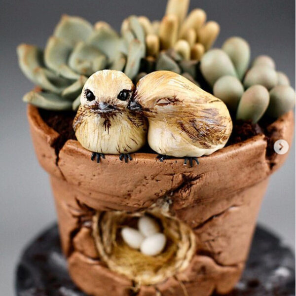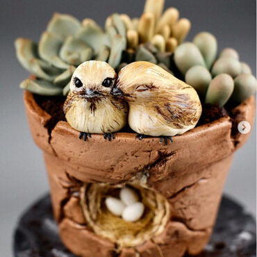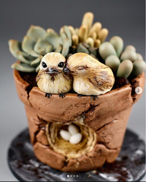 На мастер-классе мы реалистично задекорируем торт в виде горшка, создадим 3 вида суккулентов, а также слепим птичку!🪴