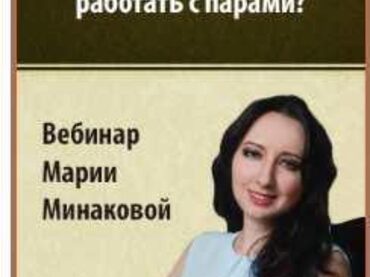 М.Минакова: «Знаю, что многие психологи опасаются начинать работать с парами, считая, что не справятся. Такая работа действительно сложнее индивидуального приема, но в рамках данного вебинара я непременно познакомлю Вас с тонкостями и практическими приемами, которые лично использую в терапии пар. Эти знания и умения помогут Вам проводить такую работу легко, с удовольствием и потрясающими результатами!»
