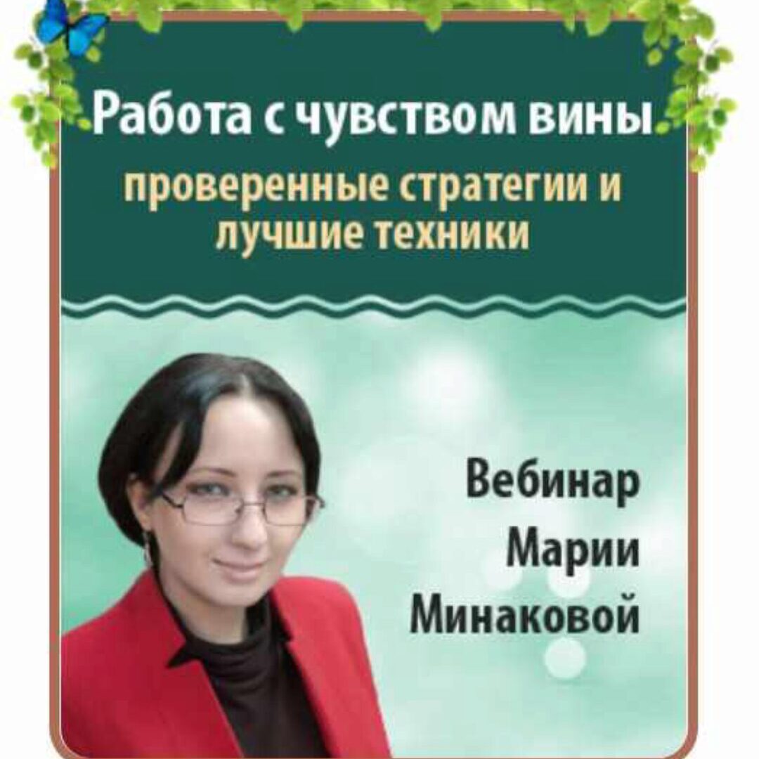 Мария Минакова: «В этом вебинаре я по крупицам собрала для Вас лучшие техники и собственные наработки по работе с чувством вины. Только те, которые прошли проверку живой практикой - моей и моих учеников.»