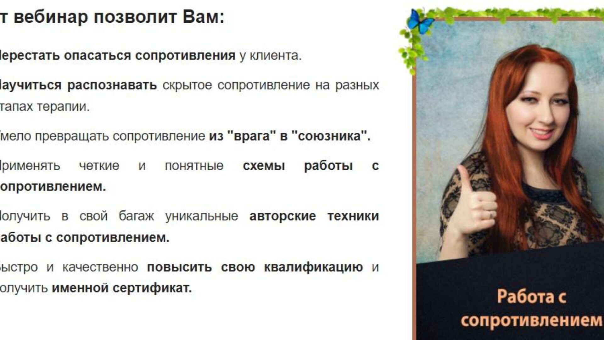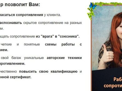 5. Получить в свой багаж уникальные авторские техники работы с сопротивлением.