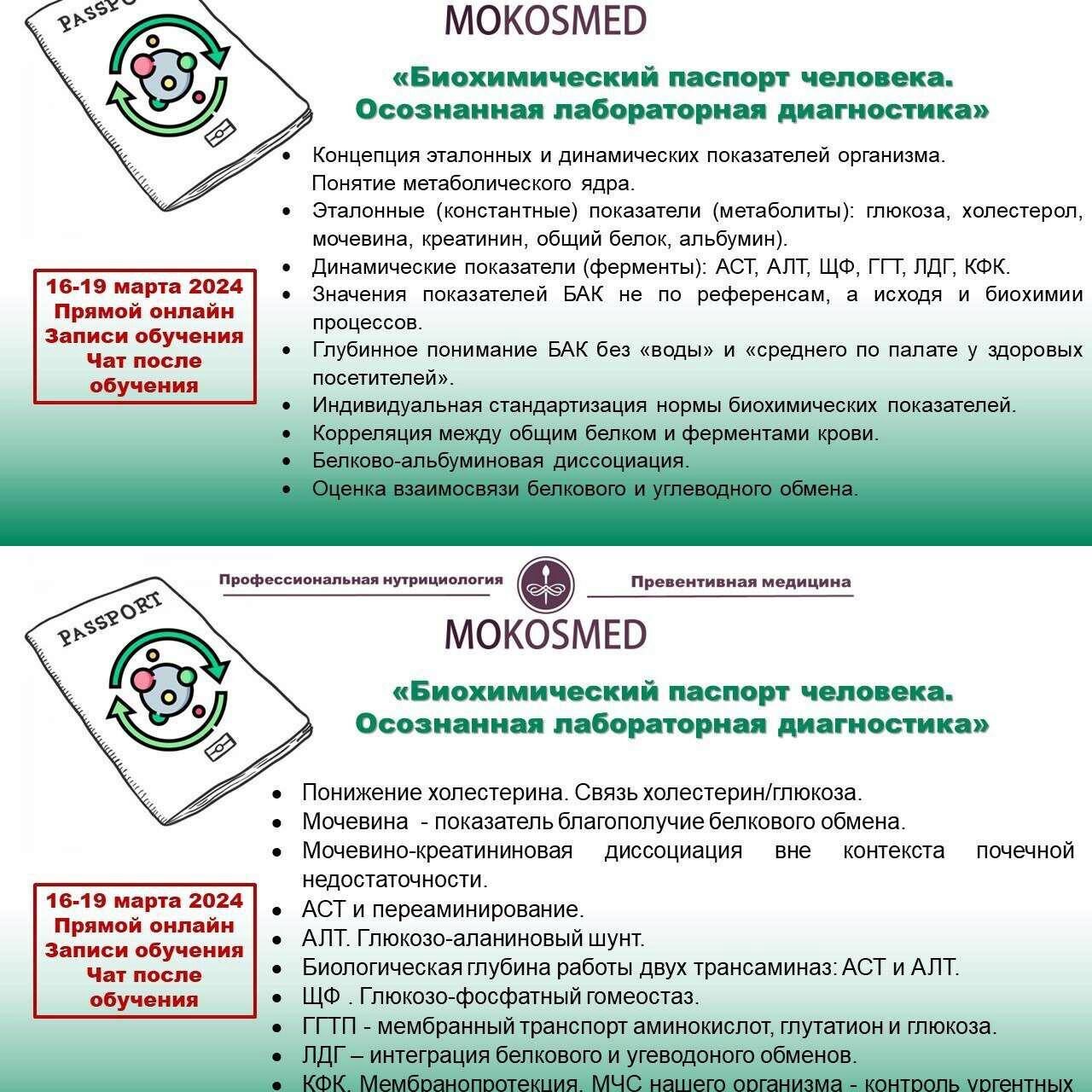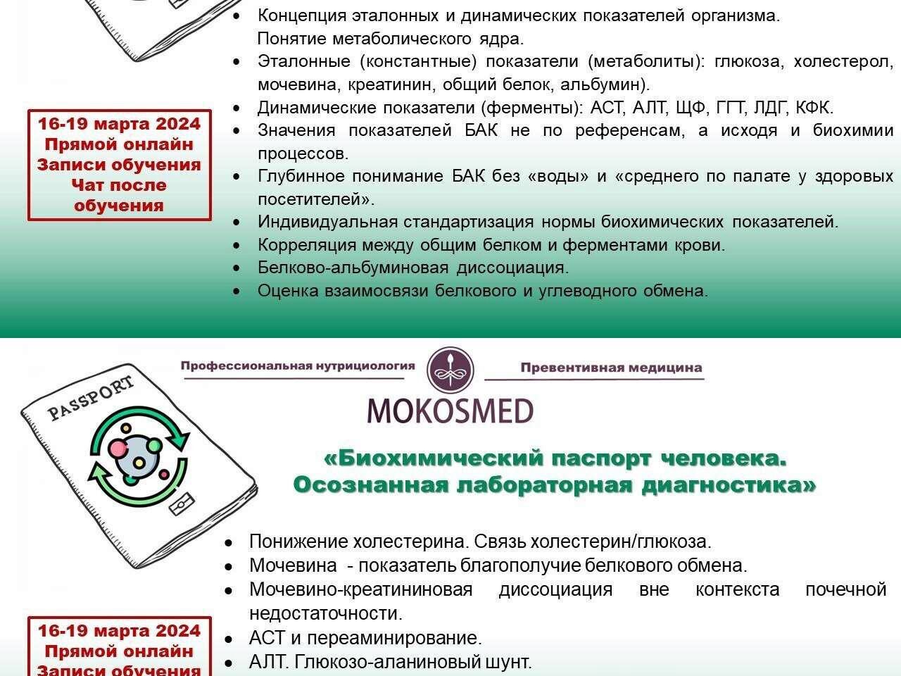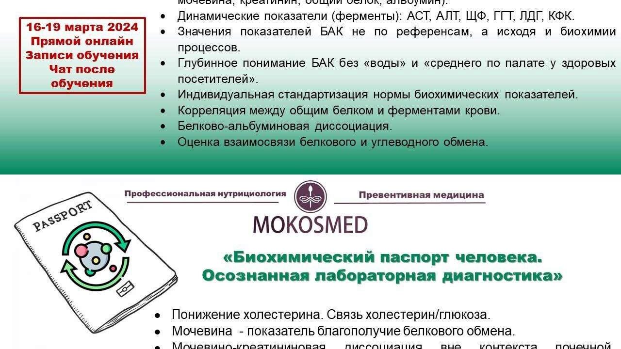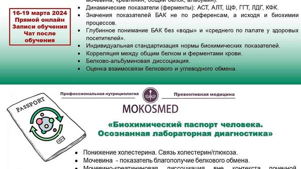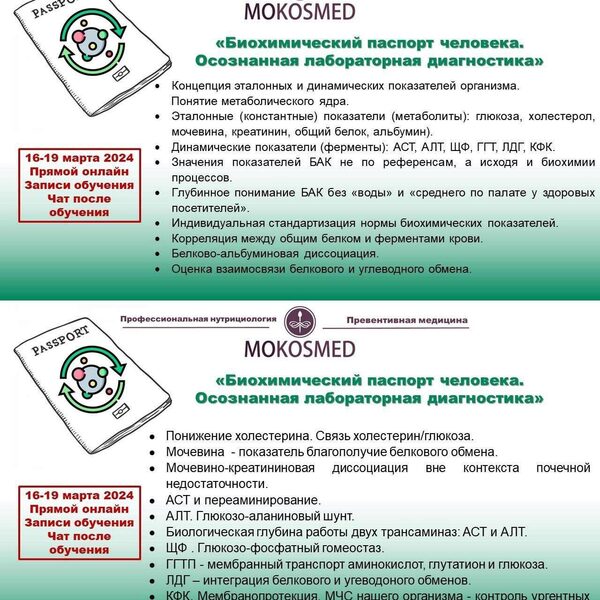 Курс MOKOSMED - Биохимический паспорт человека. Осознанная лабораторная диагностика, автор Мария Моргунова. Первый и единственный запуск учебного цикла
