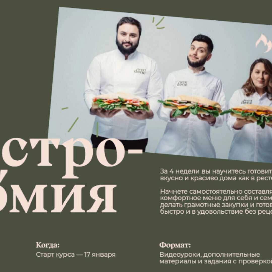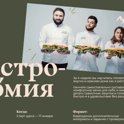 За 4 недели вы научитесь готовить вкусно и красиво дома как в ресторане. Начнете самостоятельно составлять комфортное меню для себя и семьи, делать грамотные закупки и готовить быстро и в удовольствие без рецептов. Этот курс для вас, если: Вы тратите много денег на продукты, но в середине недели
