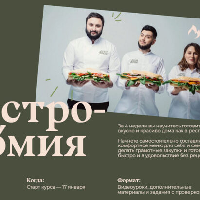 Вы научитесь не просто готовить необычные блюда из доступных ингредиентов, но и красиво их сервировать и подавать. Когда каждый день можешь сделать свой прием пищи вкусным, разнообразным и красивым, это поднимает настроение и дает энергию.