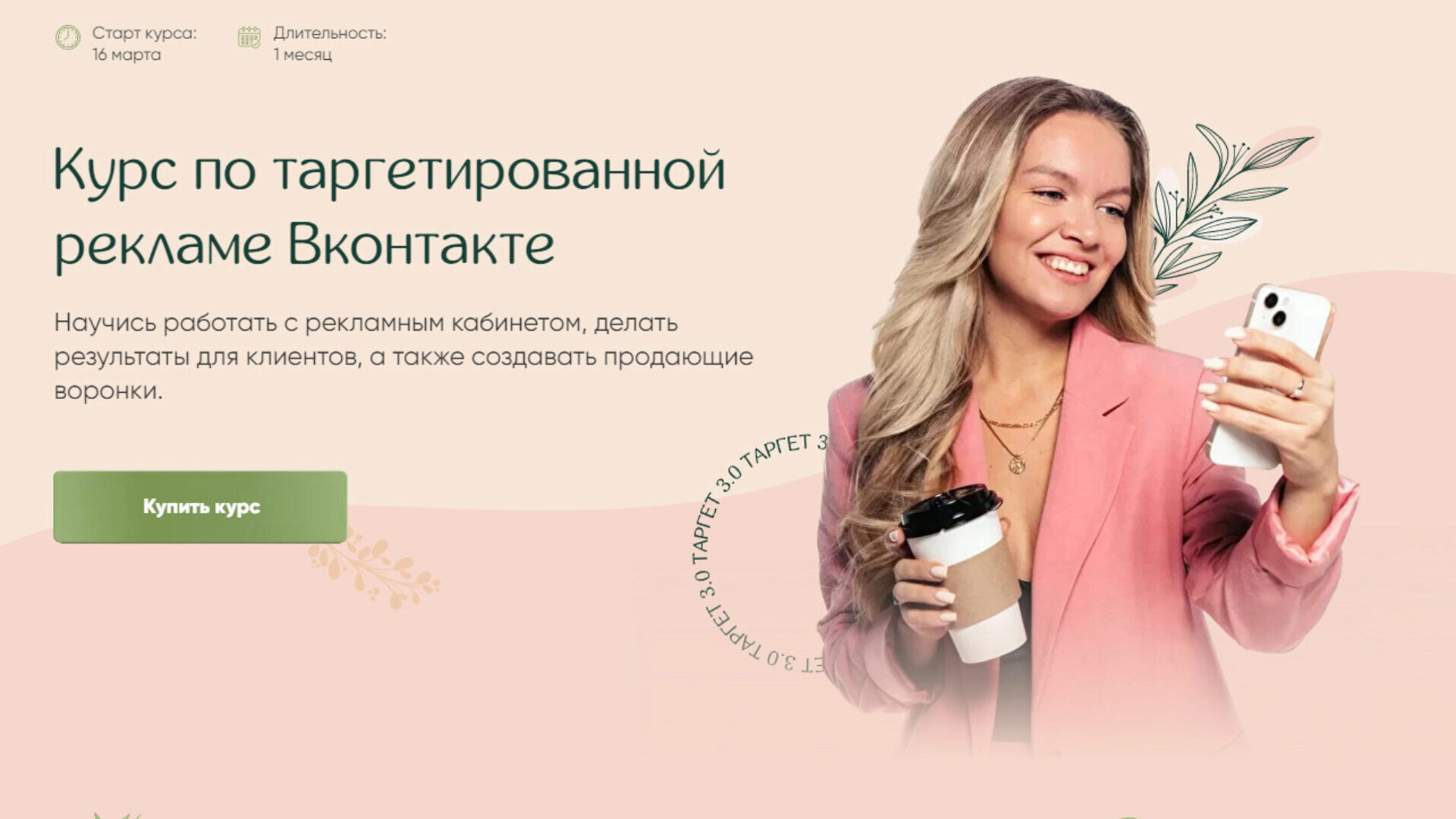 Курс по таргетированной рекламе Вконтакте. Тариф Самостоятельный, автор Мария Цепляева. Научись работать с рекламным кабинетом, делать результаты для клиентов, а также создавать продающие воронки.