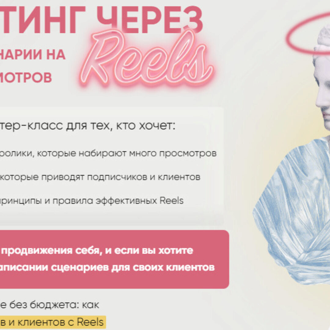 Прямые эфиры не входят в курс, так как записей не было. Почему нужно снимать Reels? Возможности для творчества в новом разделе Инстаграма не ограничены ничем, кроме ваших. Вам потребуется только телефон и фантазия! Этот курс для вас, если вы: 1. Блогер Хотите невероятный охват, хотите удивить своих