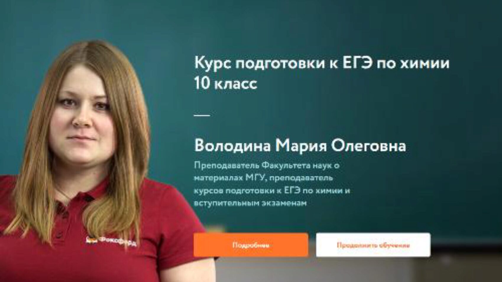 Мария Володина «Курс подготовки к ЕГЭ по химии 10 класс» — Фоксфорд слив скачать